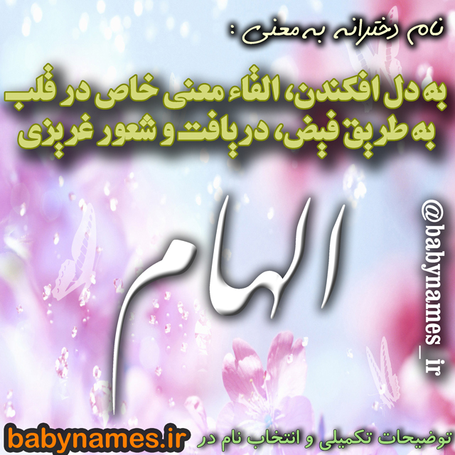الهام : (عربي) 1- به دل افكندن، در دل انداختن؛ 2- القاء معني خاص در قلب به طريق فيض؛ 3- رسيدن فكر به ذهن و در معارف اسلامي القاي امري از سوي خداوند به دل كسي؛ 4- (در قديم) دريافت و شعور غريزي.