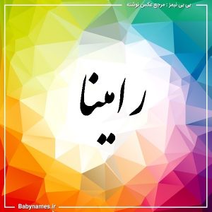 رامينا : (رامين + الف (نسبت)) 1- منسوب به رامين؛ 2- دخترِ طربناک.