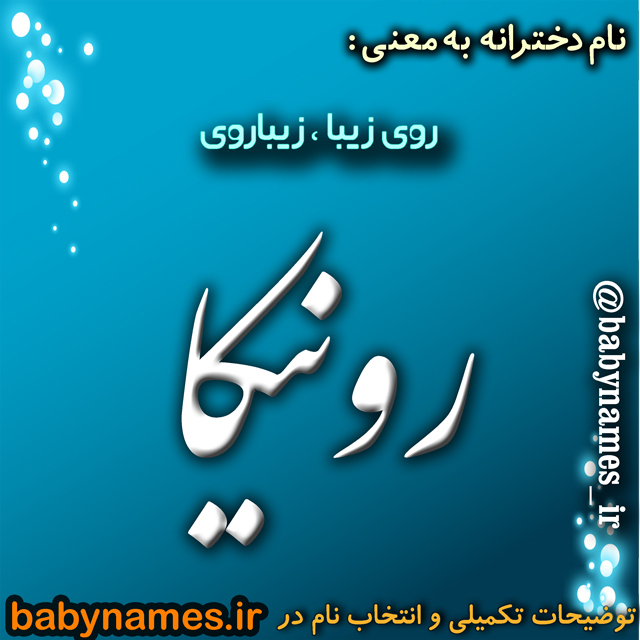 رونیکا : (رو + نیکا)، روی زیبا، زیباروی.