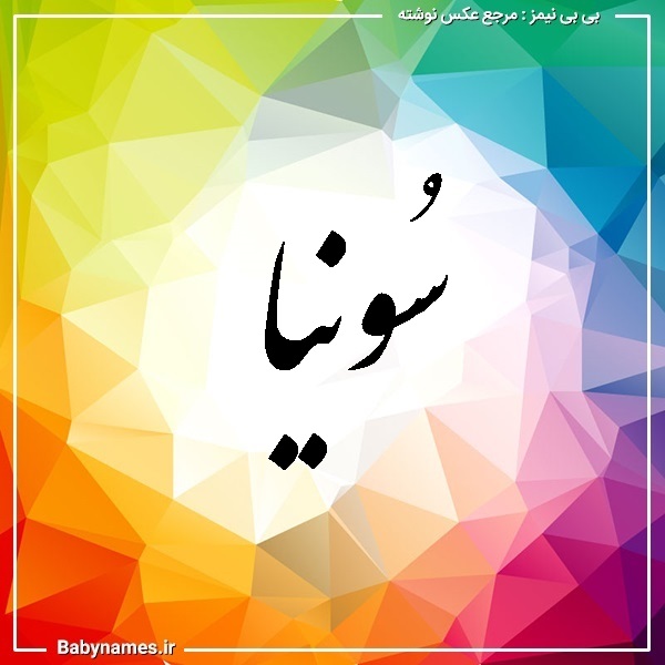 معنی: (تلفظ: suniyā) (ترکی، فارسی) (سو = نور + نیا) نورِ نیاکان، (در یونانی) خرد و عقل – دختر نور، دختری که در اجتماع رتبه بالایی داشته باشد