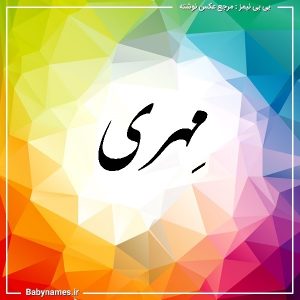 معنی: (تلفظ: mehri) (مهر + ی (پسوند نسبت) )، منسوب به مهر، مهر، به علاوه (در موسیقی) نوعی از چنگ – منسوب به مهر