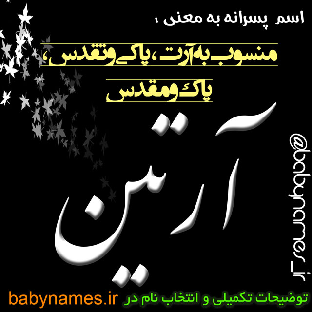آرتين : 1- منسوب به آرت، پاكي و تقدس؛ 2- (به مجاز) پاك و مقدس؛ 3- (اَعلام) هفتمين پادشاه ماد.
