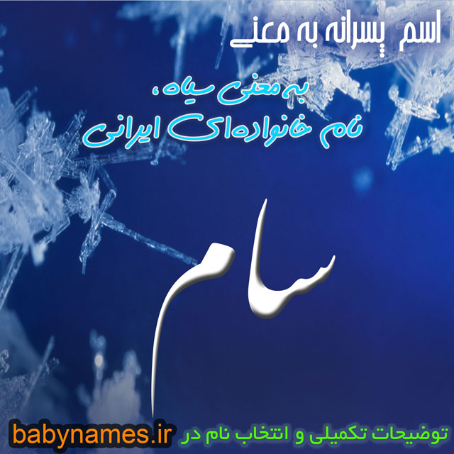 سام : (در اوستايي) 1- به معني سياه؛ 2- نام خانوادهاي ايراني؛ 3- (اَعلام) (در شاهنامه) ايراني نوادهي گرشاسب جهان پهلوان پدر زال و جد رستم جهان پهلوان؛ 4- (در عبري) سام به معني «اسم» و آن نام فرزند ارشد نوح نبي(ع) ميباشد، که قوم سامی به او منسوب است.