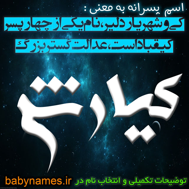 كيارش: (از كي + آرش)، 1- در اوستا «kavi arshan» به معني كي و شهريار دلير؛ 2- (اَعلام) نام يكي از چهار پسر كيقباد است.